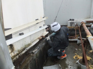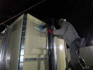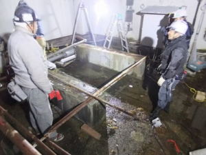 老人ホームですので、断水しない様に、一夜のうちに、一気に入替します。