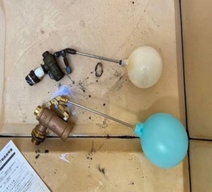 まずは貯水槽を点検したところ、ボールタップの劣化しており、水位が下がっても給水されていないことが原因のようです。